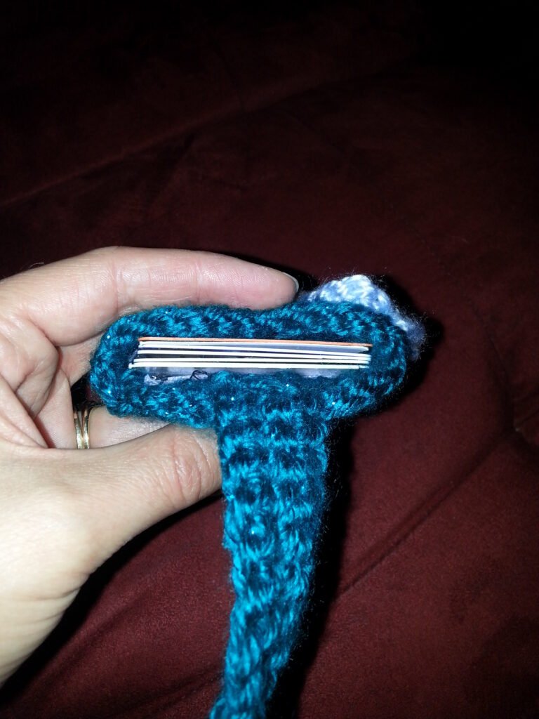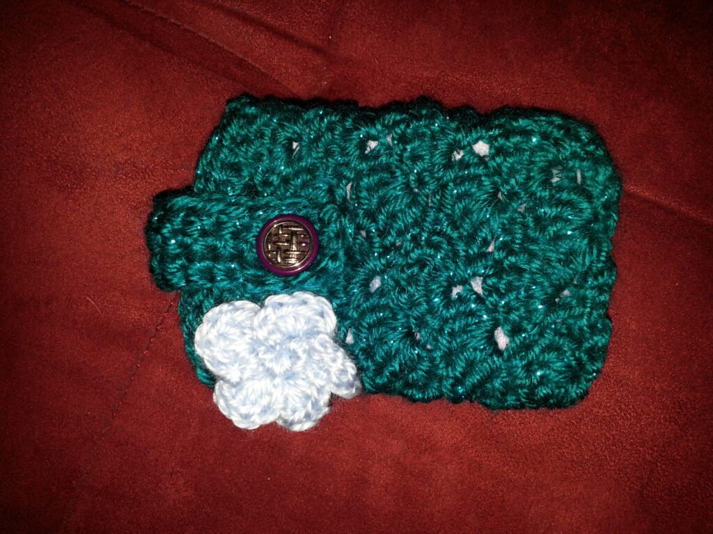 I made this for my Sister-in-Law, I have no idea if she uses it but I was trying to find other things to make other than scarfs and washcloths. I can’t remember how or why I decided on a card holder. But I really like small projects, I like the satisfaction of “finished” and small projects get you there quicker